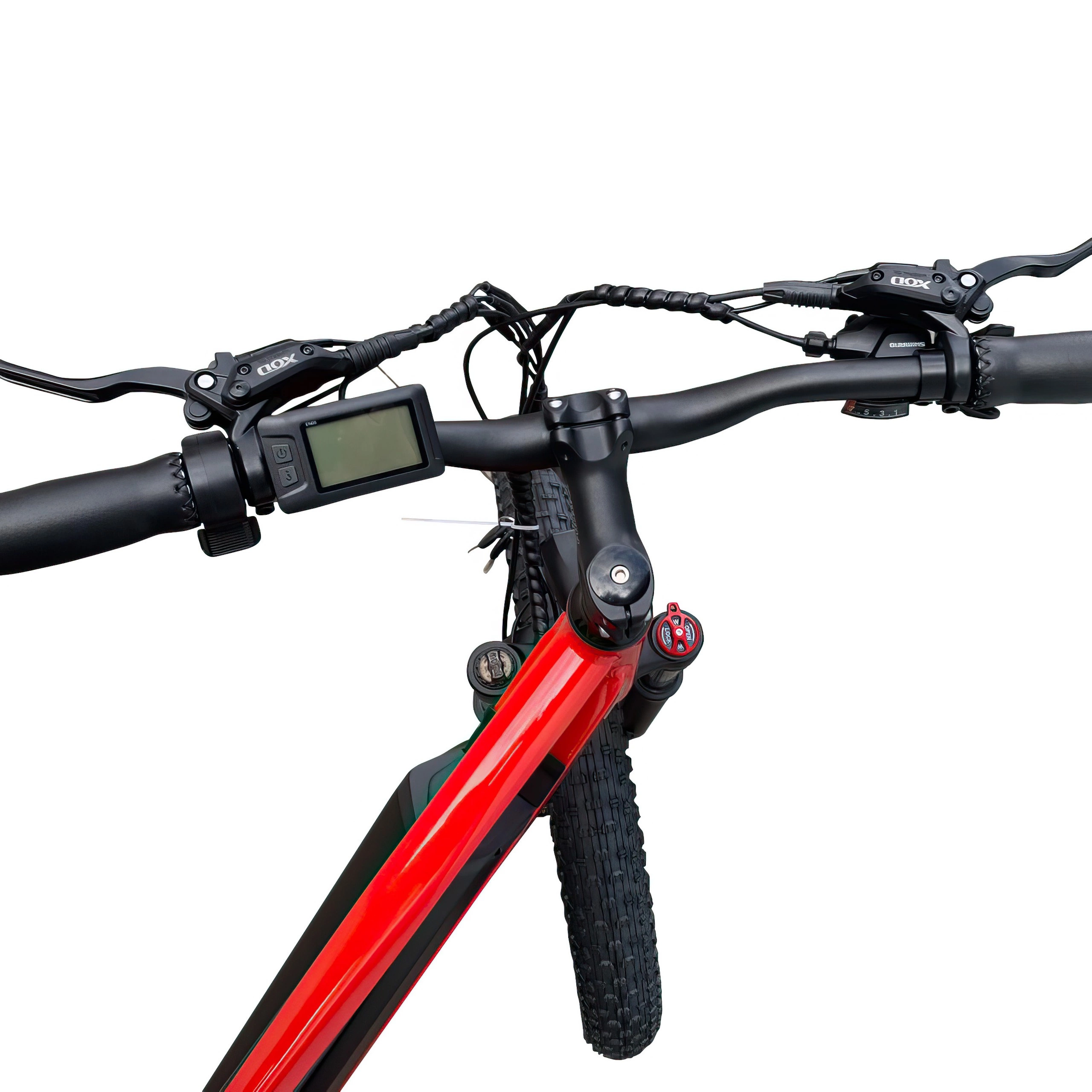 Per migliorare il comfort di guida, la bicicletta è dotata di una forcella a sospensione idraulica e di una sospensione posteriore ad aria completamente regolabile. Questo avanzato sistema di sospensione assorbe le asperità e gli urti, garantendo stabilità e controllo sui terreni irregolari.