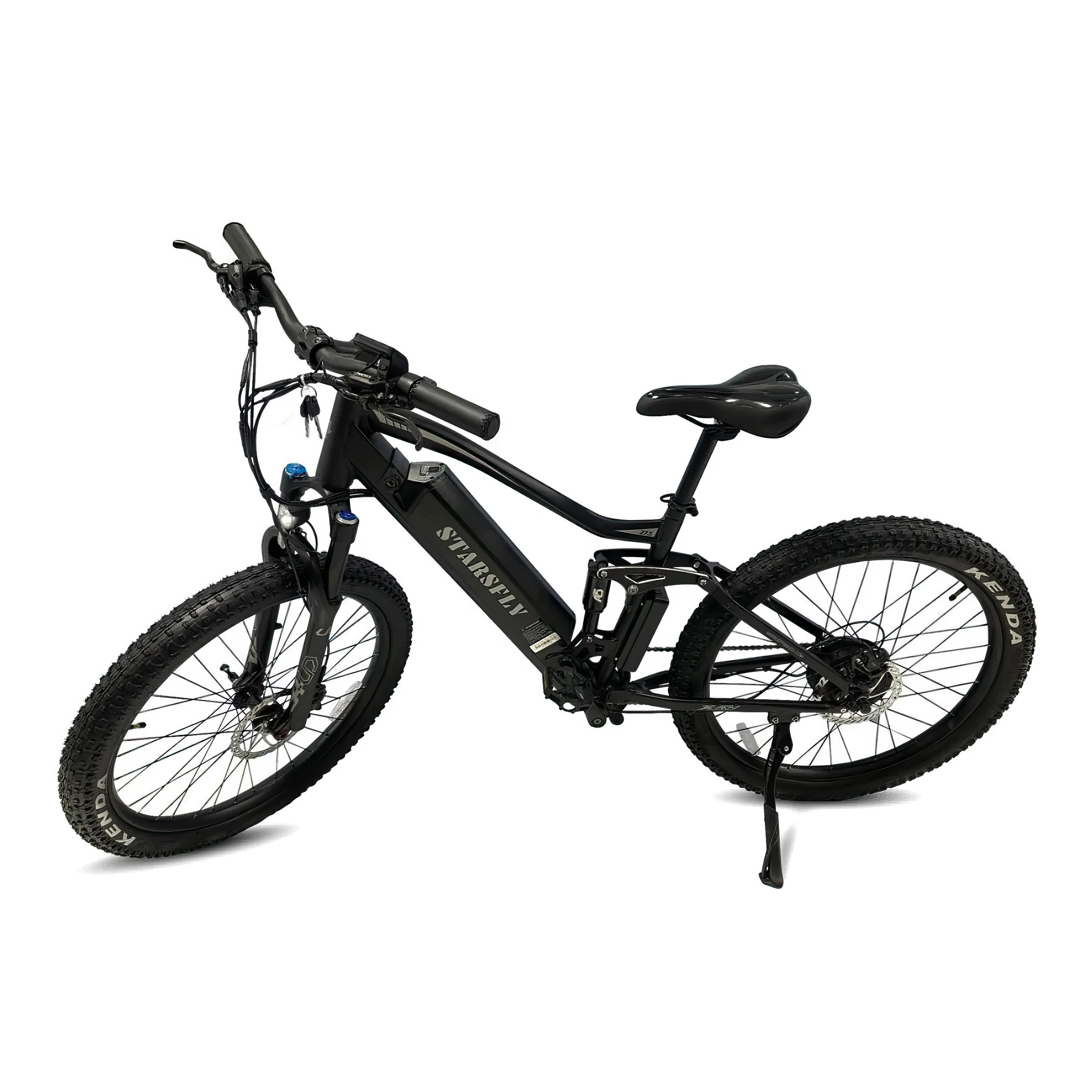 Il telaio leggero in lega di alluminio e gli pneumatici Kenda 27,5" x 3,0" forniscono una struttura robusta ma agile, pronta ad affrontare con facilità le diverse condizioni, mentre il design elegante aggiunge un'estetica moderna.