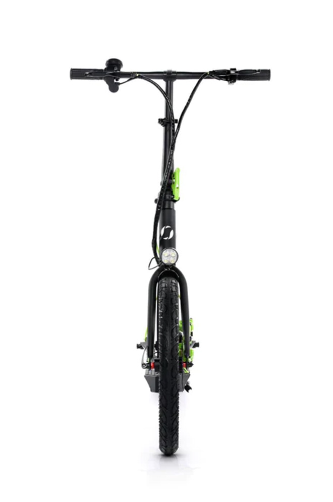 L'Argento Active Bike Electric Scooter elettrico sfoggia un moderno design italiano che armonizza estetica e funzionalità. La struttura leggera in lega di alluminio garantisce la durata nel tempo e facilita lo stoccaggio. La combinazione di colori neri con elementi verdi aggiunge un tocco contemporaneo al suo aspetto classico.