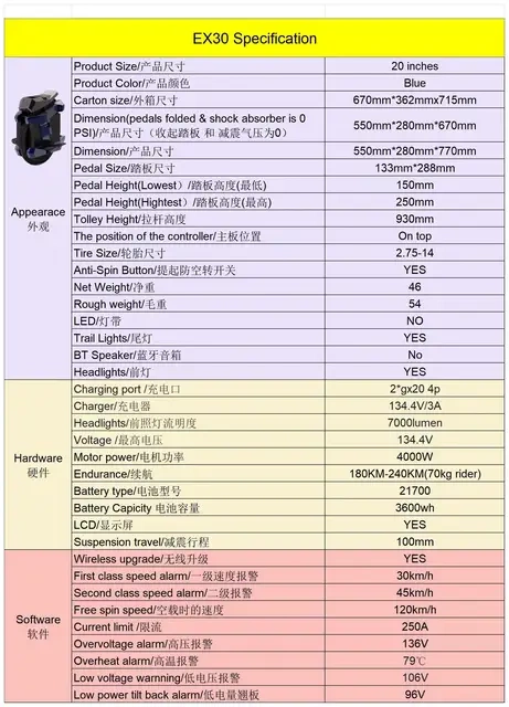 Il cuore di Begode EX30 è la sua formidabile unità di alimentazione da 3600Wh / 134V. Fornisce un'autonomia senza pari, fino a 161 km, per utenti che pesa circa 70 kg, rendendolo uno dei monocicli elettrici più potenti sul mercato.