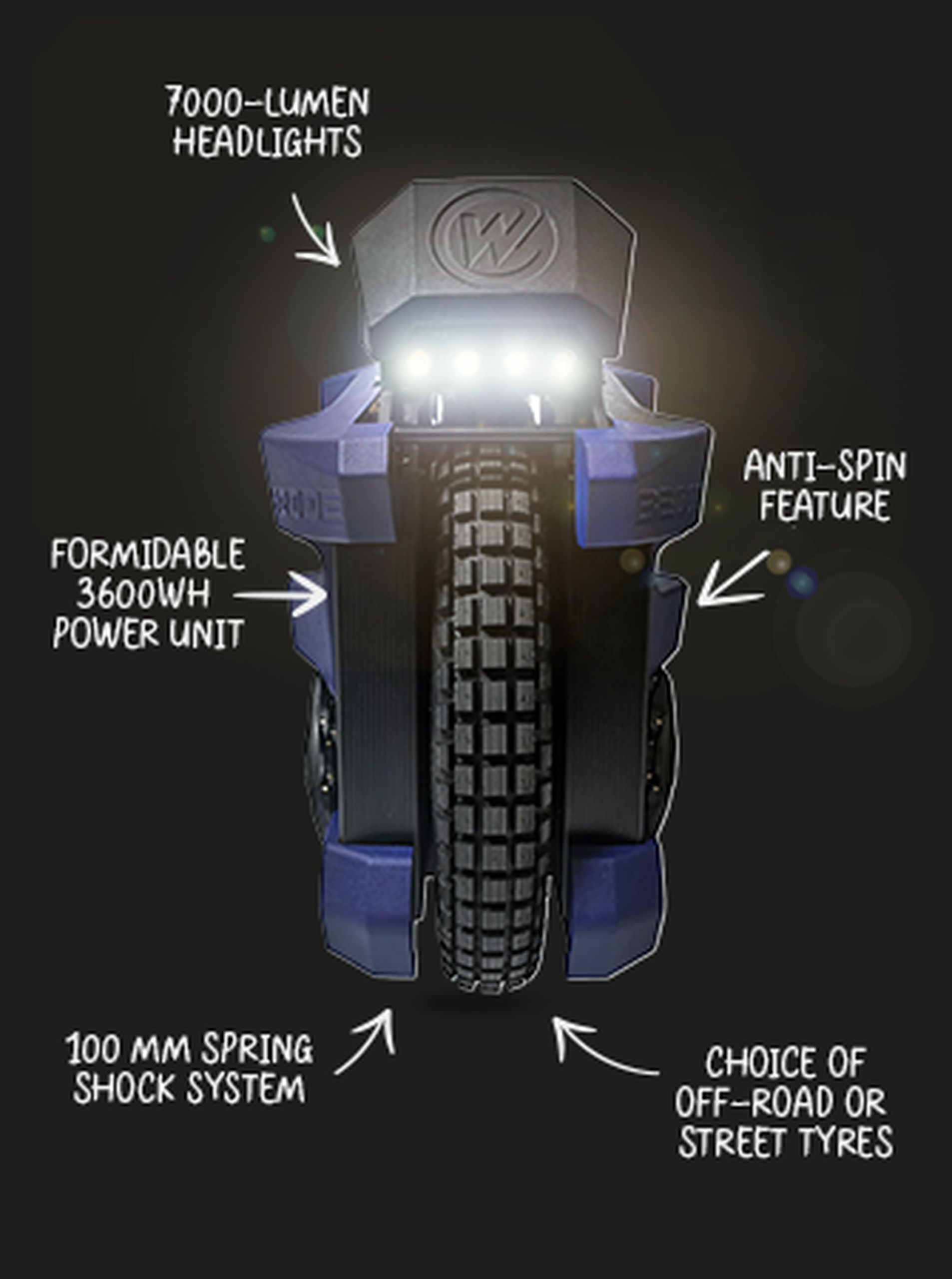 Il cuore di Begode EX30 è la sua formidabile unità di alimentazione da 3600Wh / 134V. Fornisce un'autonomia senza pari, fino a 161 km, per utenti che pesa circa 70 kg, rendendolo uno dei monocicli elettrici più potenti sul mercato.