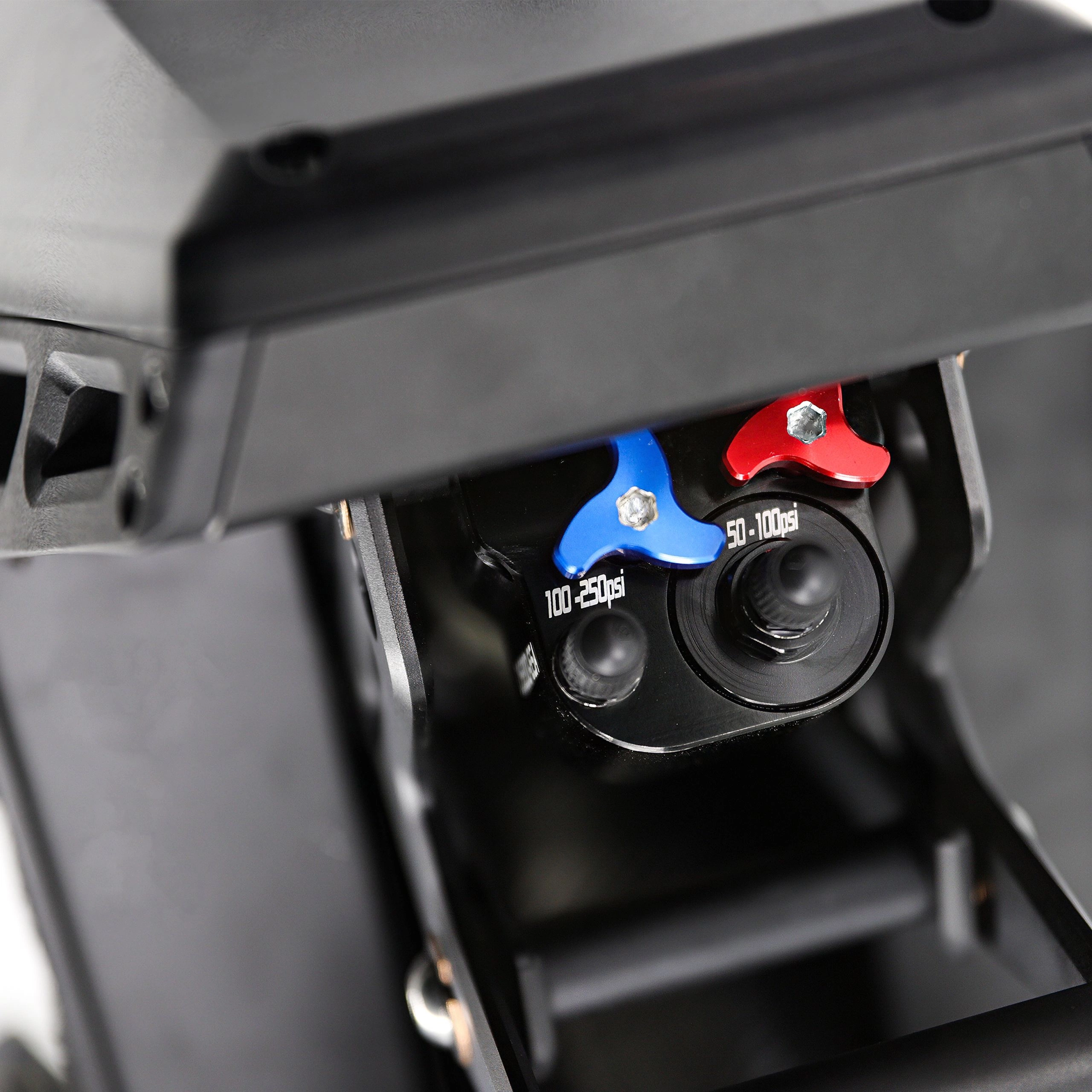 Sulla scia del successo dell'ammortizzatore DS200 progettato internamente, il Blitz è ora dotato della variante ad aria DS200-65A. Questo sistema di sospensione personalizzabile consente a utenti di adattare la guida alle proprie preferenze, garantendo il massimo comfort e stabilità su tutti i terreni