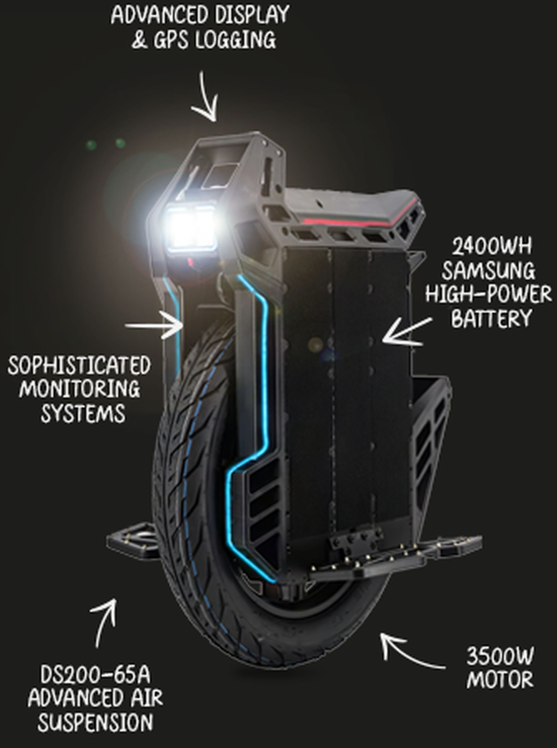 Il modello Begode Blitz è dotato di una batteria ad alta potenza Samsung 50S da 2.400Wh/134V con tecnologia SmartBMS. Questa batteria avanzata offre capacità di ricarica rapida, fino a 20A/2.680W, riducendo in modo significativo i tempi di inattività. Le celle 50S aumentano del 20% la densità di energia, aumentando l'autonomia senza aumentare il peso. La batteria è progettata per resistere a temperature estreme.