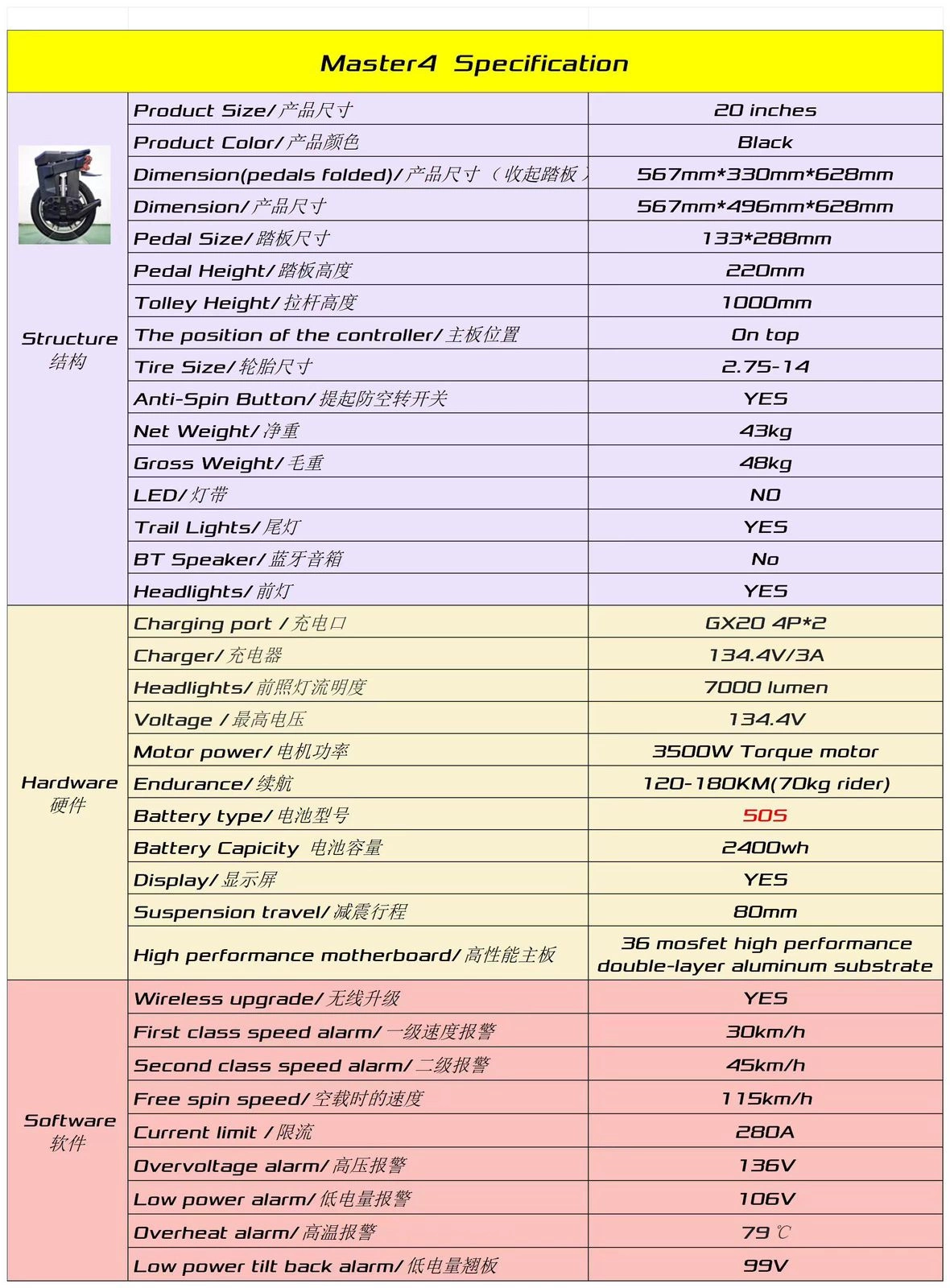 Il Master4 di Begode è dotato di numerosi sistemi di sicurezza: un limite di corrente di 240A, un allarme di surriscaldamento a 79°C, un allarme di sovratensione e un allarme di bassa potenza, per garantire che la corsa non sia solo esaltante ma anche sicura
