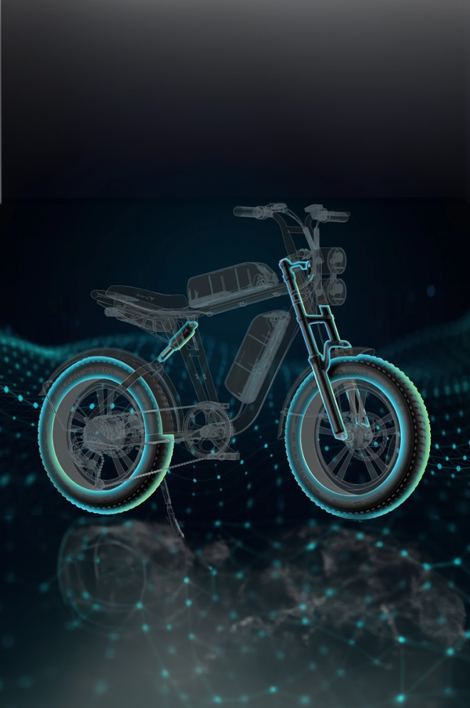 I pneumatici grassi a triplo strato da 20" x 4,0", realizzati con gomma importata, nano treccia di carbonio e camere d'aria in gomma butilica, garantiscono trazione e comfort eccezionali. In combinazione con un doppio sistema di sospensioni&mpannello;idrauliche anteriori e ammortizzatori posteriori ad aria&mpannello;questa configurazione garantisce una guida fluida anche sui sentieri più accidentati, raddoppiando l'assorbimento degli urti rispetto alle e-bike standard.