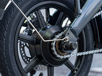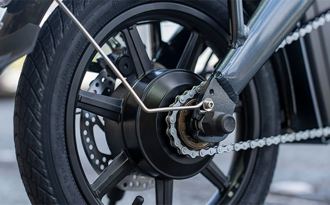 Il telaio pieghevole da 14 pollici in lega di alluminio si combina con una forcella in acciaio ad alto tenore di carbonio con un'apertura di 100 mm, perfetta per il trasporto pubblico o per gli scarponi da auto quando è ripiegato.