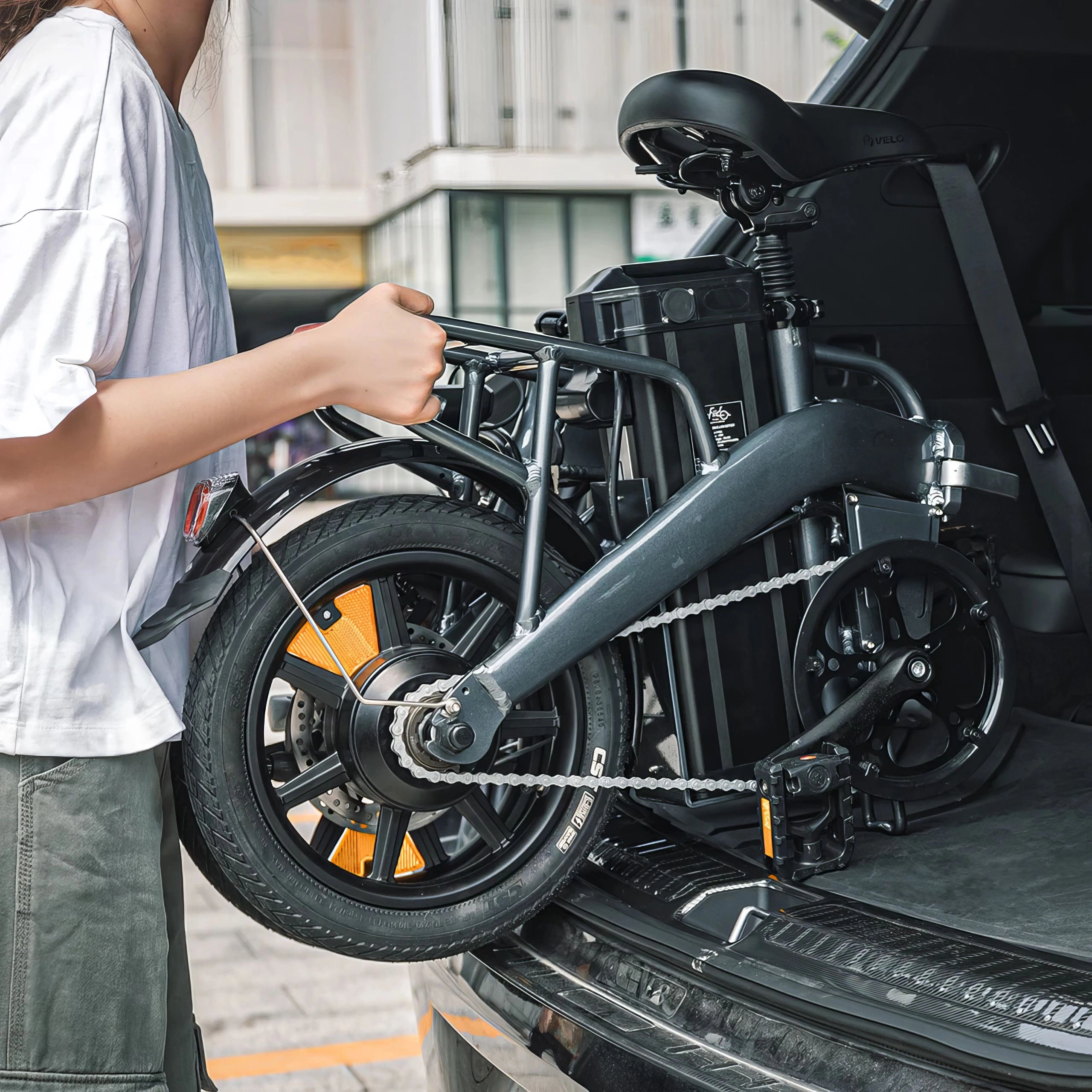 Fiido L3 vanta un telaio pieghevole in lega di alluminio da 14 pollici, abbinato a una forcella in acciaio ad alto tenore di carbonio con un'apertura di 100 mm. Questo design compatto consente di ripiegare la bicicletta in modo semplice e veloce, per poterla riporre comodamente negli stivali dell'auto o portarla con sé sui mezzi pubblici. Che siate pendolari o in viaggio, la sua portabilità lo rende un compagno ideale.
