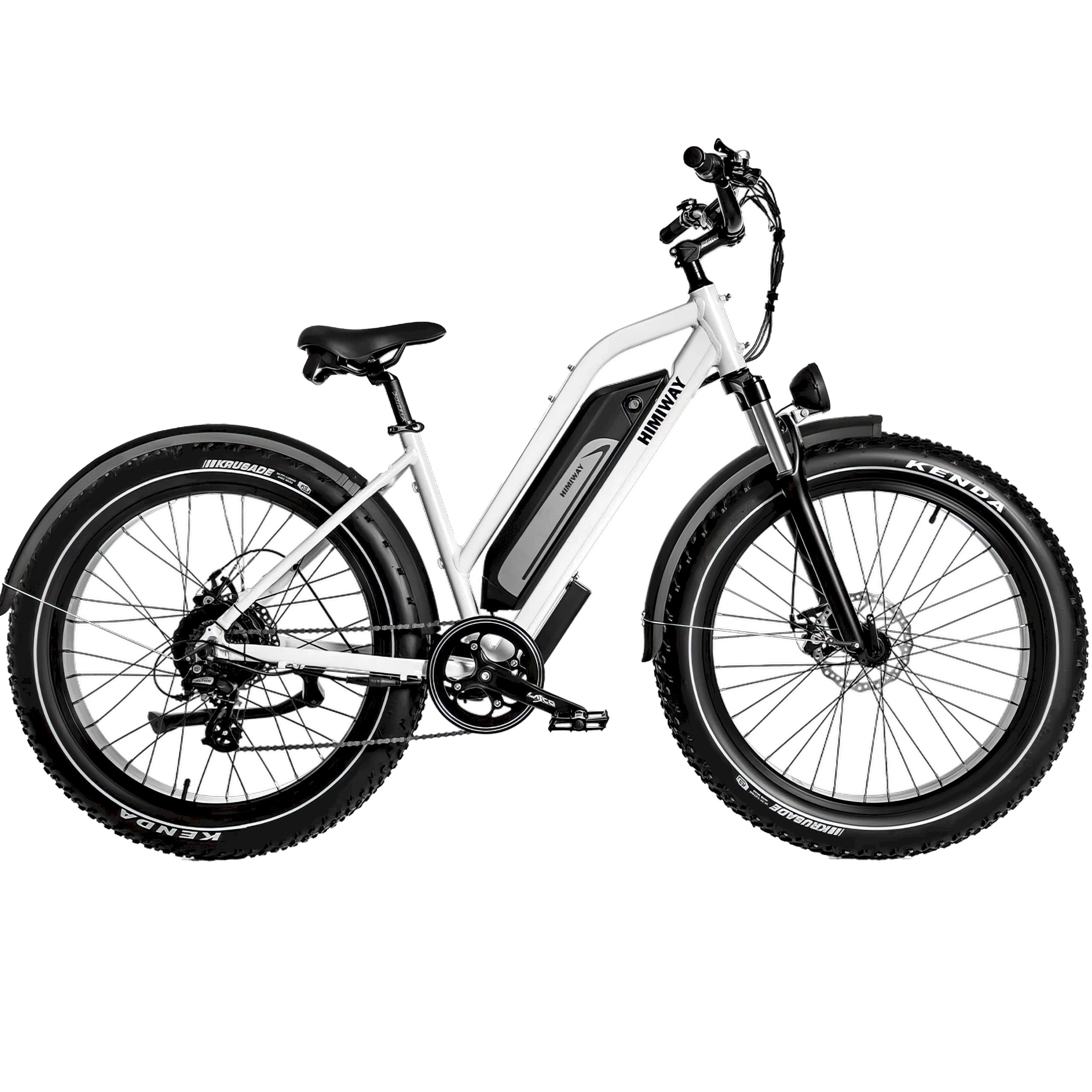 Disponibile nei colori bianco e nero, la Himiway D3 Cruiser High-Step sfoggia un tradizionale design del telaio a diamante. La batteria è integrata nel tubo obliquo, per un aspetto più lineare.
