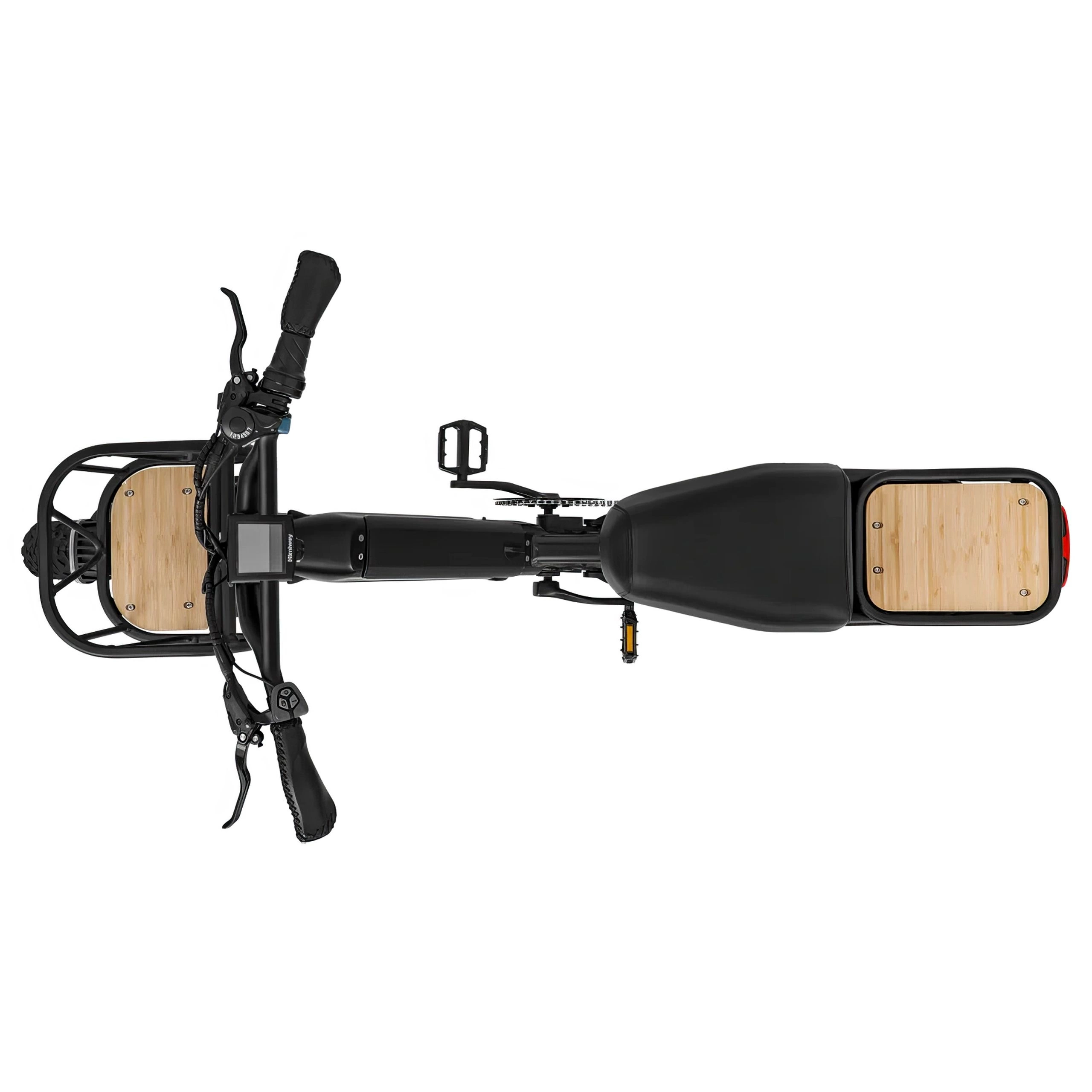 La bicicletta è costruita in robusto alluminio 6061 e può trasportare fino a 330 libbre (150 kg). Grazie al design a gradini, non è necessario far oscillare la gamba in alto per salire. Basta fare un passo e sedersi. L'intera bicicletta pesa 42 kg.