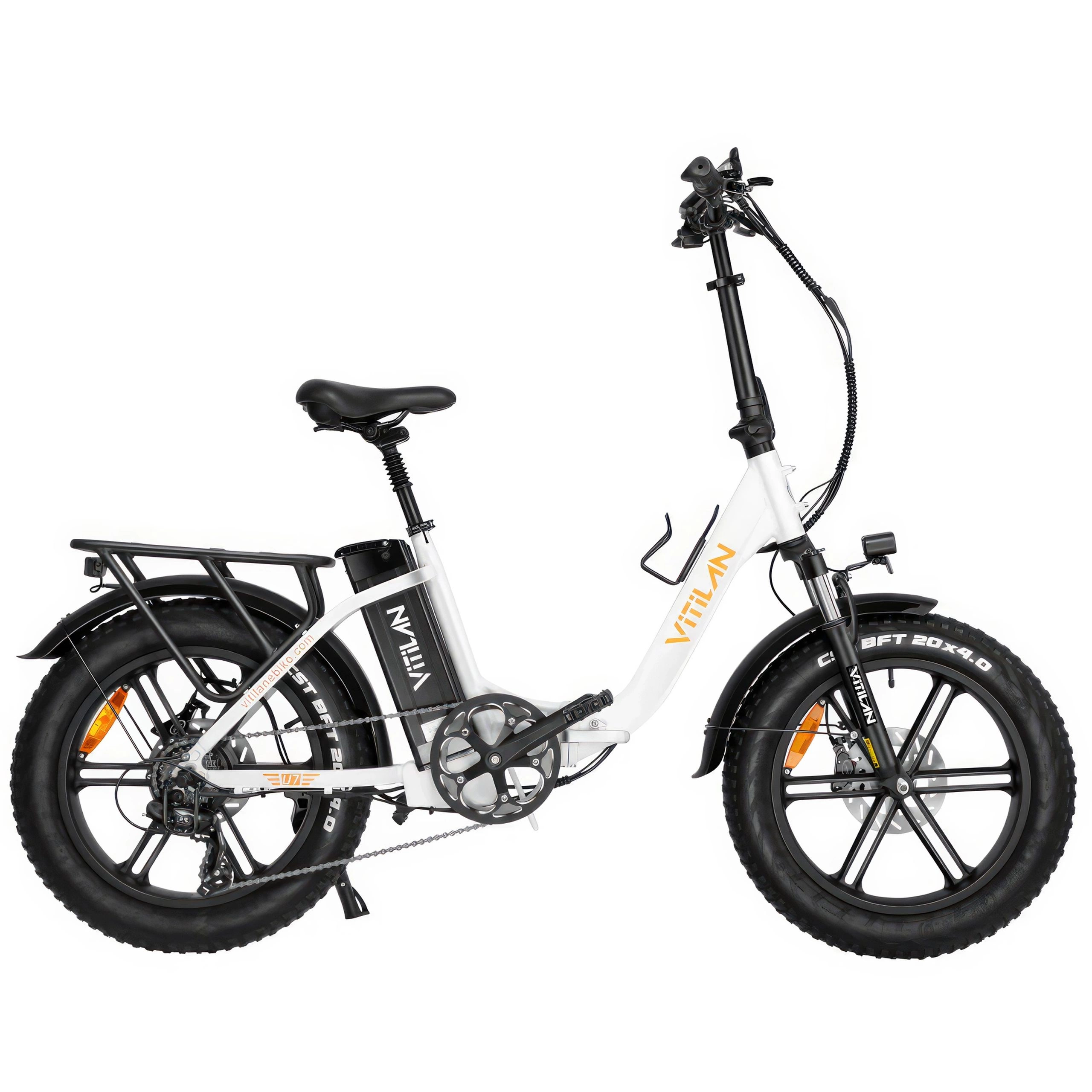 La Vitilan U7 2.0 è dotata di un telaio pieghevole che la rende facile da riporre e trasportare. Quando è piegata, l'e-bike occupa meno spazio, rendendola comoda da tenere in casa o in garage. È anche possibile piegarla e inserirla in un bagagliaio più grande e portarla con sé durante viaggi e vacanze.