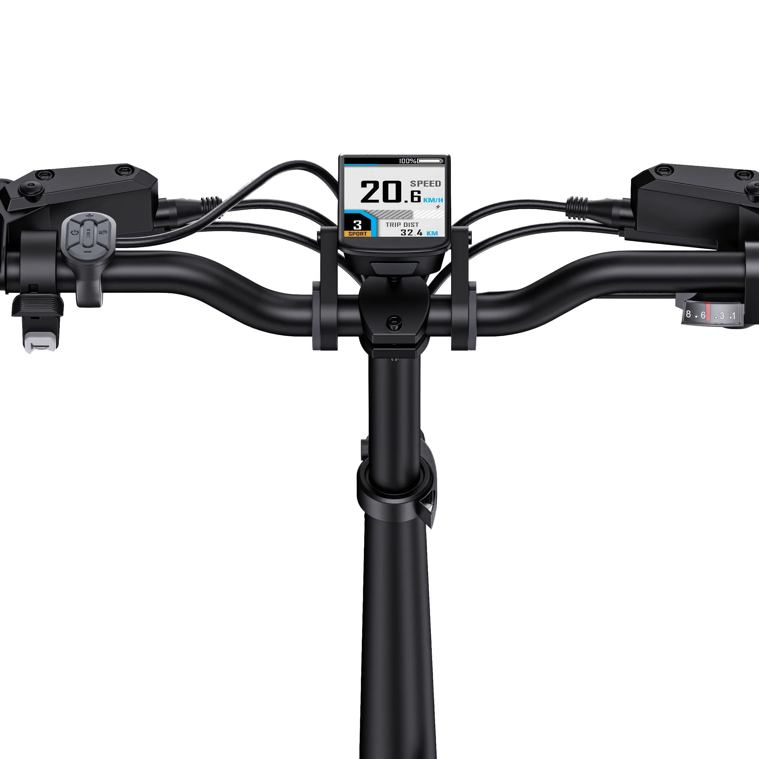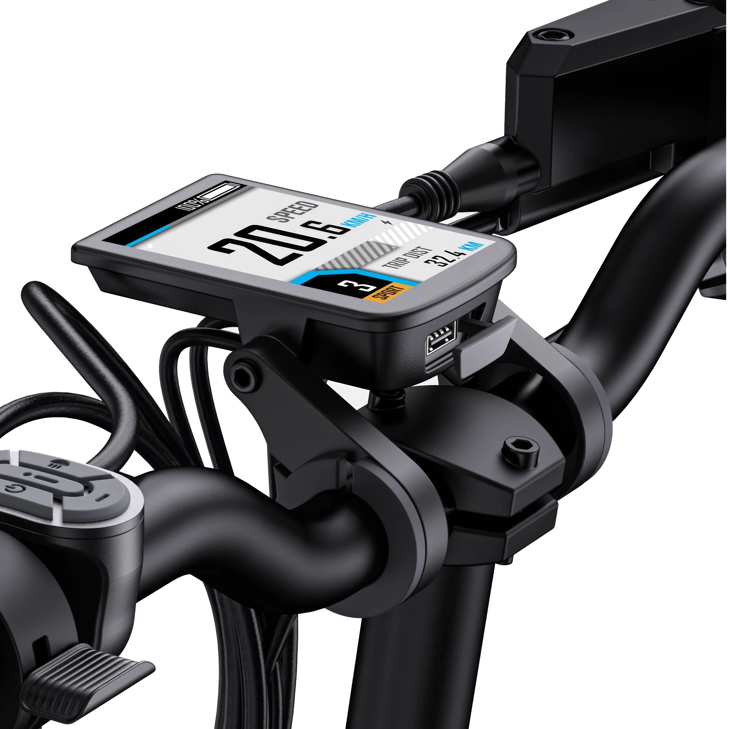 Il display LCD della bicicletta mostra in tempo reale dati come la velocità, la distanza percorsa e il livello della batteria. Inoltre, consente di selezionare la modalità di guida e di regolare i livelli di potenza. Grazie a questo display, è possibile monitorare e gestire in modo più efficace la propria corsa.