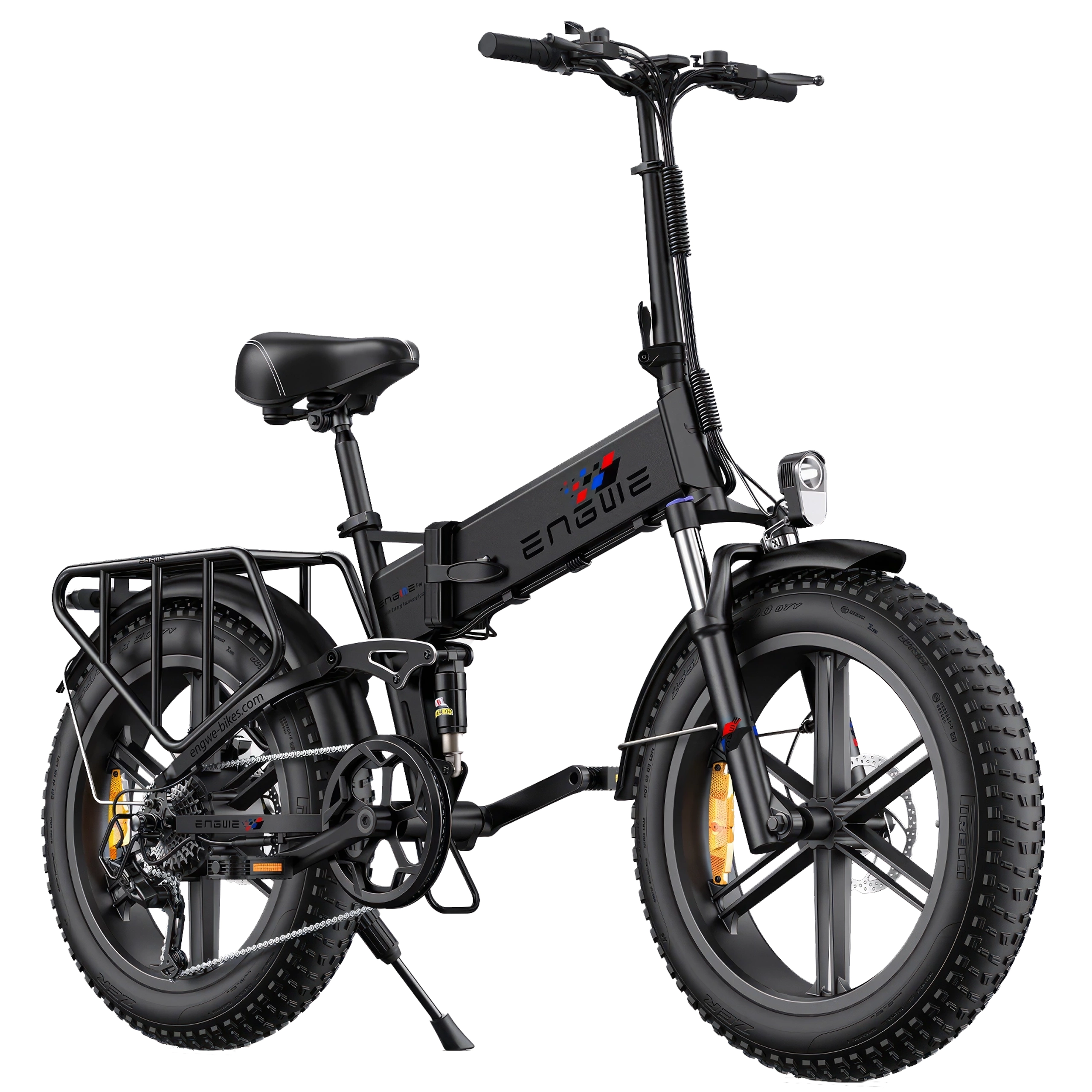 La bicicletta elettrica ENGWE Engine X è dotata di sospensioni meccaniche anteriori e posteriori. Garantisce un eccellente assorbimento degli urti e una guida fluida su terreni accidentati. In combinazione con i pneumatici da 20" x 4,0" per tutti i terreni, questa e-bike assicura un viaggio stabile e confortevole su qualsiasi superficie.