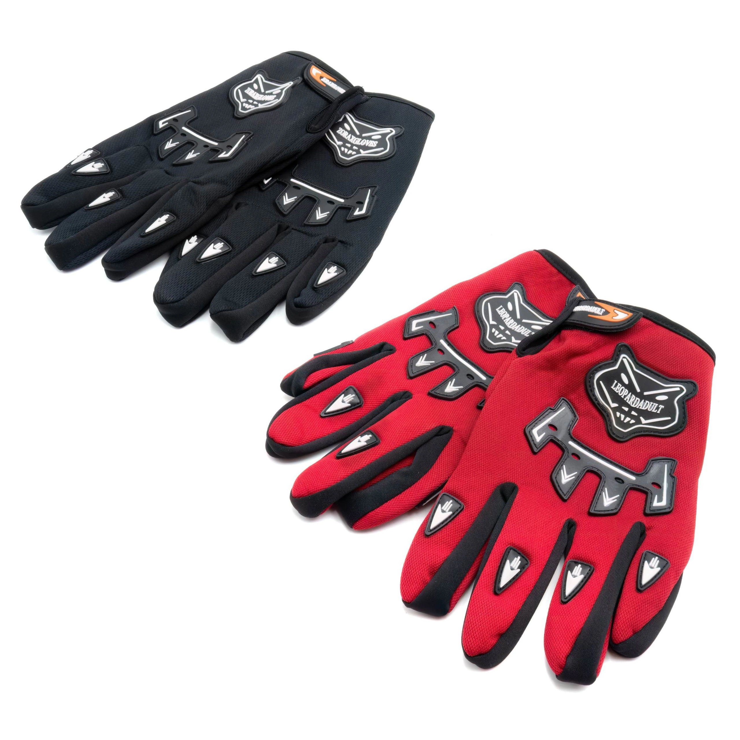 I guanti scooter elettrico sono dotati di cinturini regolabili sul polso, che consentono una vestibilità aderente e sicura. Rimangono in posizione per una presa confortevole. Sono disponibili in 3 taglie&mpannello;M, L e XL&mpannello;e in 2 versioni di colore: rosso e nero.
