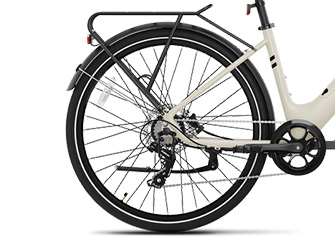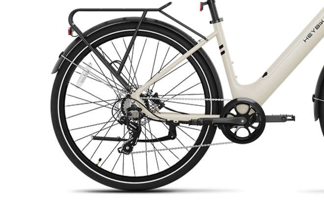 La Heybike EC 1-ST è dotata di robusti pneumatici 700C*40C, progettati per affrontare con facilità i vari terreni. Questi pneumatici offrono un'eccellente aderenza e stabilità, garantendo una guida fluida e confortevole su strade cittadine, sentieri di campagna e percorsi fuoristrada leggeri. Il design del pneumatico migliora l'assorbimento degli urti e rende la guida più piacevole, riducendo l'affaticamento nei viaggi più lunghi.