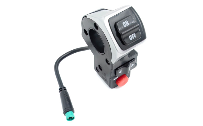 Questo interruttore multifunzionale è stato progettato per migliorare la sicurezza. È comodamente posizionato sul manubrio dell'Hitway H5 e consente di accedere ai comandi principali del scooter elettrico senza distrazioni.