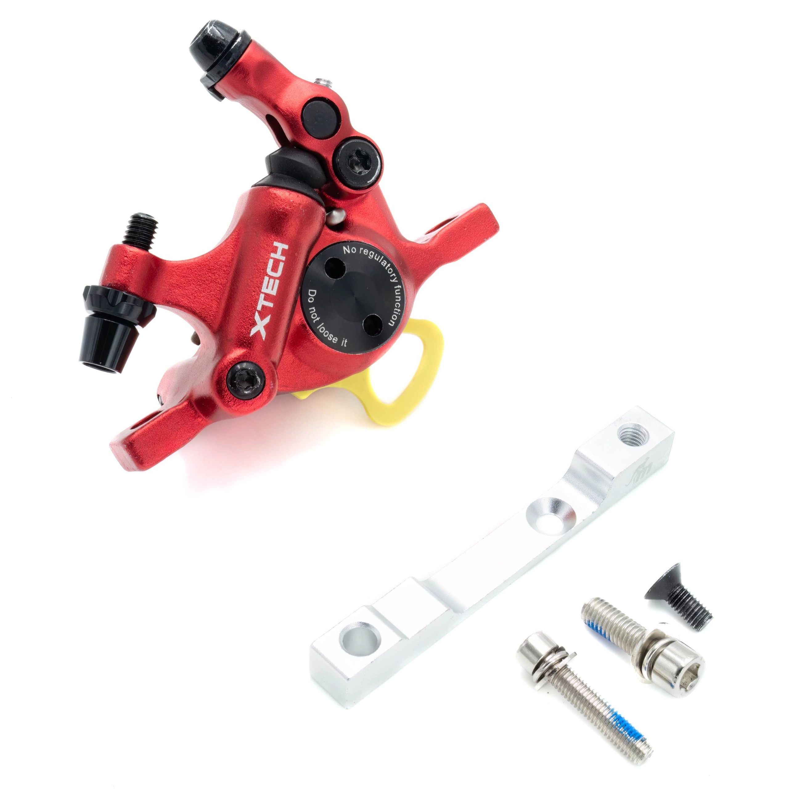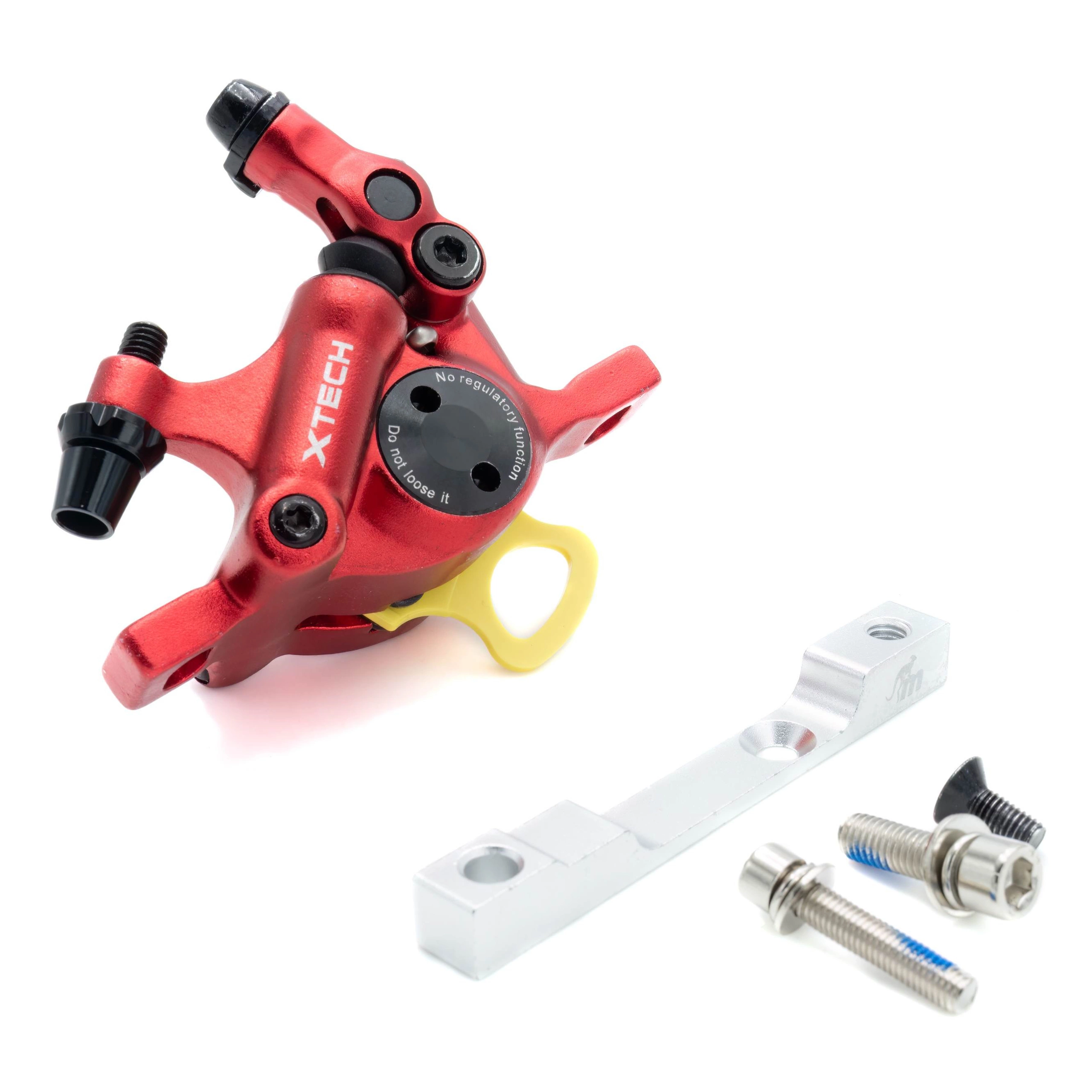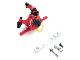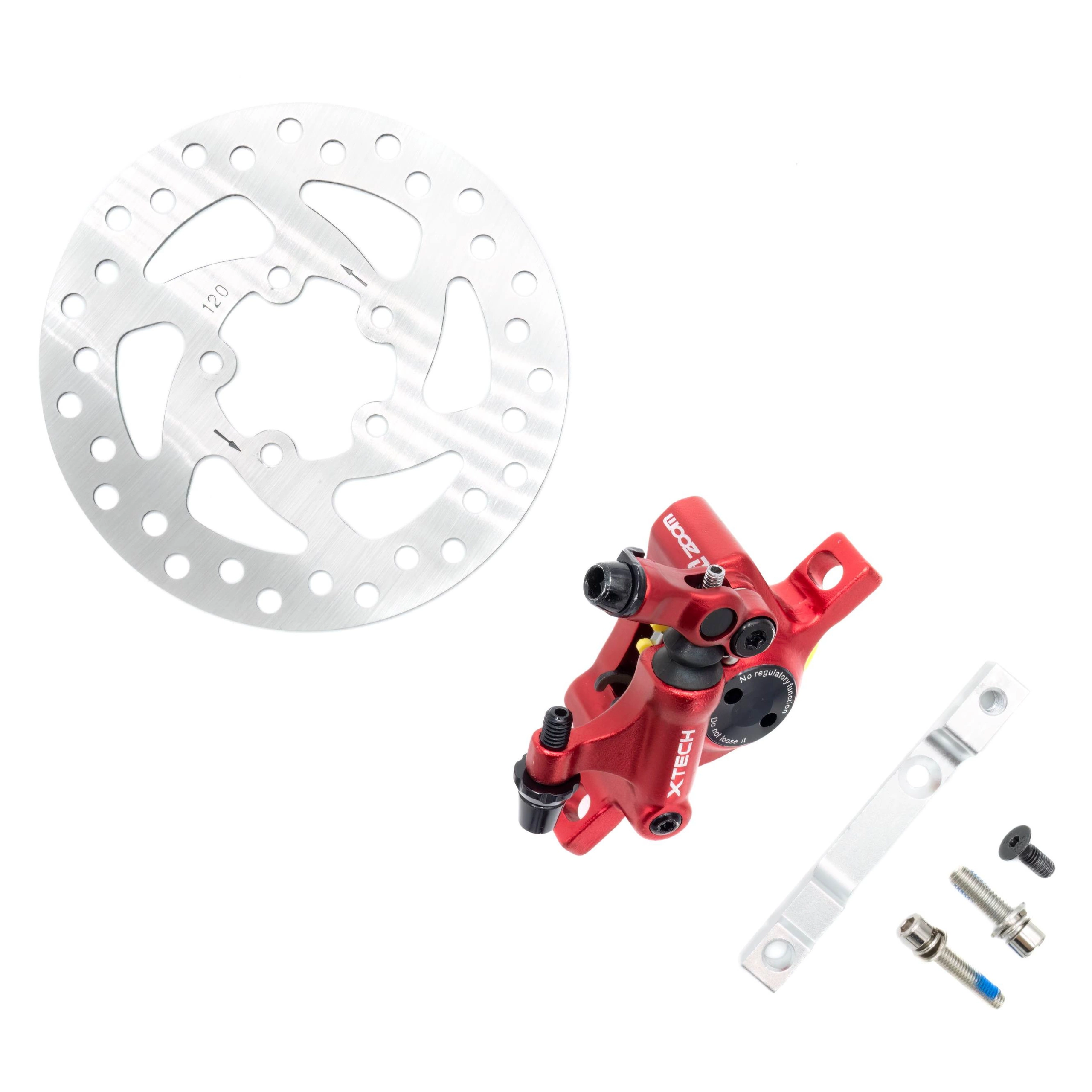 Il kit freni X-tech comprende una pinza X-tech, un distanziale per la pinza e un disco freno da 120 mm.