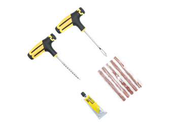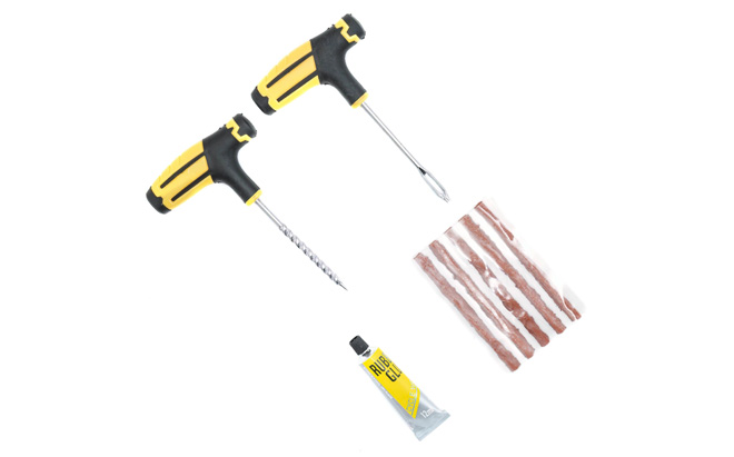 Il kit di riparazione comprende una raspa, un inserto, quattro strisce di riparazione e colla di gomma. I componenti sono stati scelti per garantire una riparazione affidabile e duratura. Una volta applicate, ridurranno il rischio di forature ricorrenti nello stesso punto.