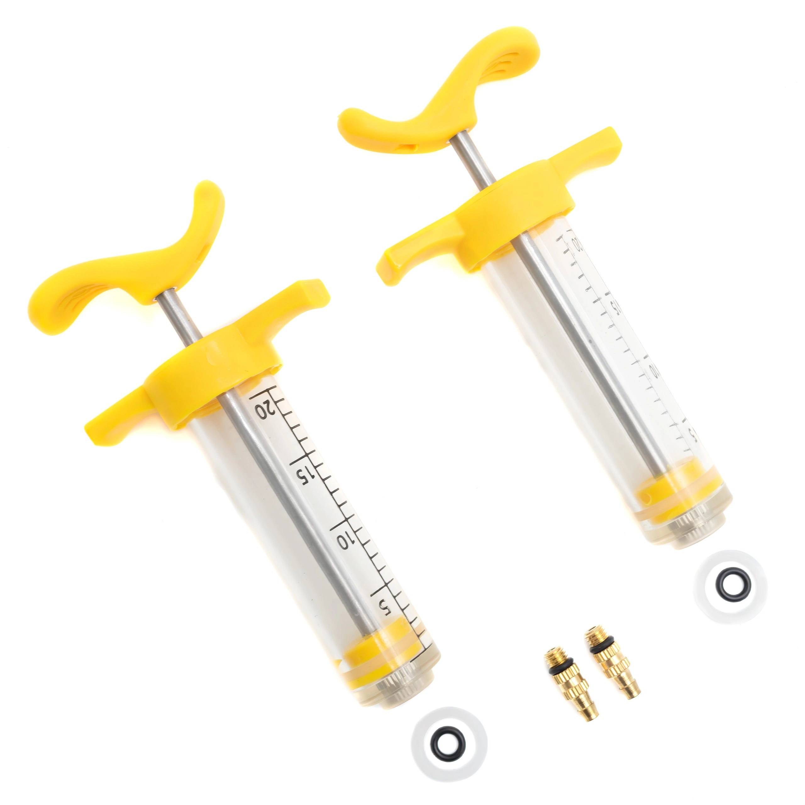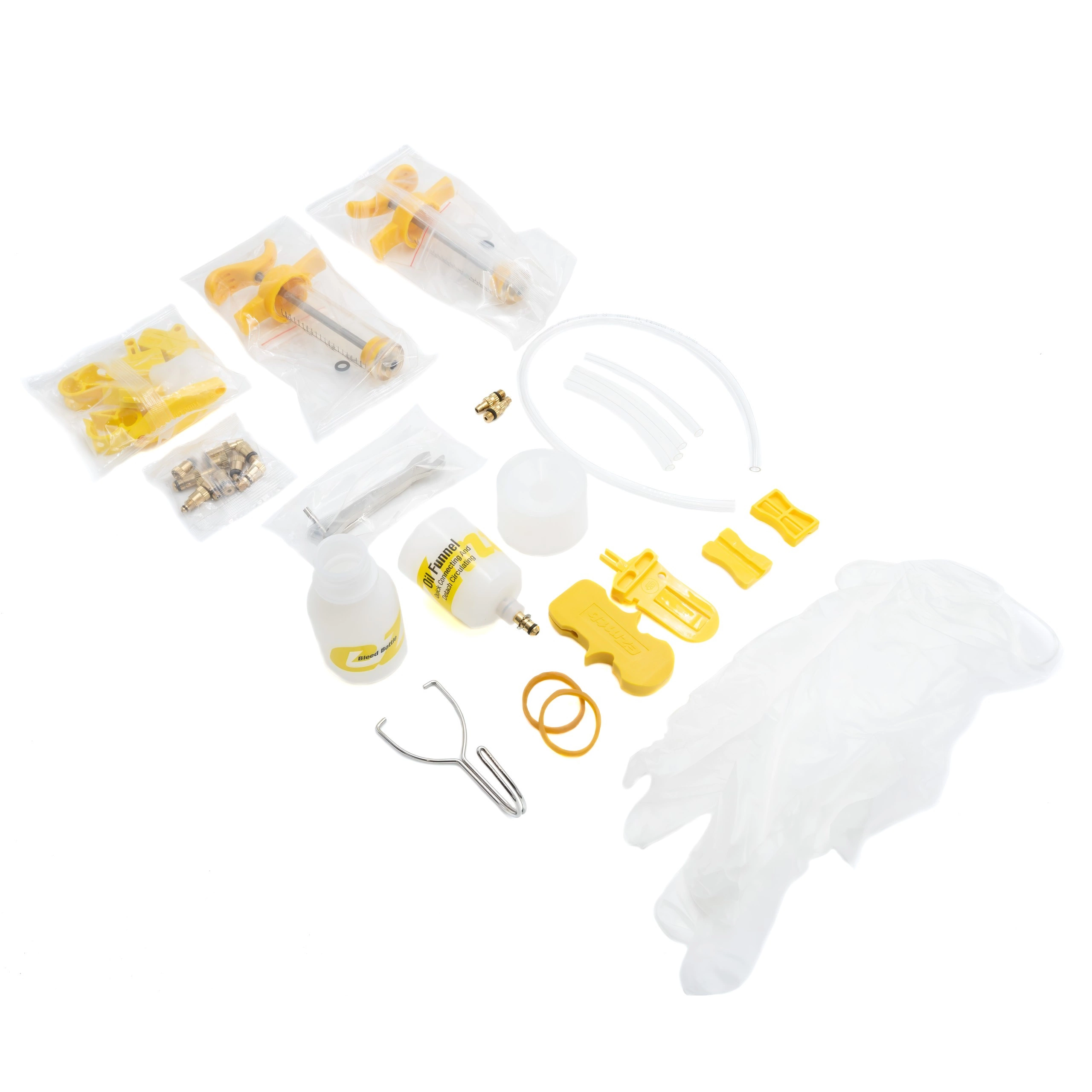 Il kit di spurgo viene utilizzato per iniettare o aspirare il liquido dei freni nei o dai tubi e dalle pinze dei freni. Si collega alla maggior parte dei modelli di sistemi frenanti. Sono inclusi anche dei guanti per mantenere le mani pulite e proteggerle dal liquido dei freni corrosivo.