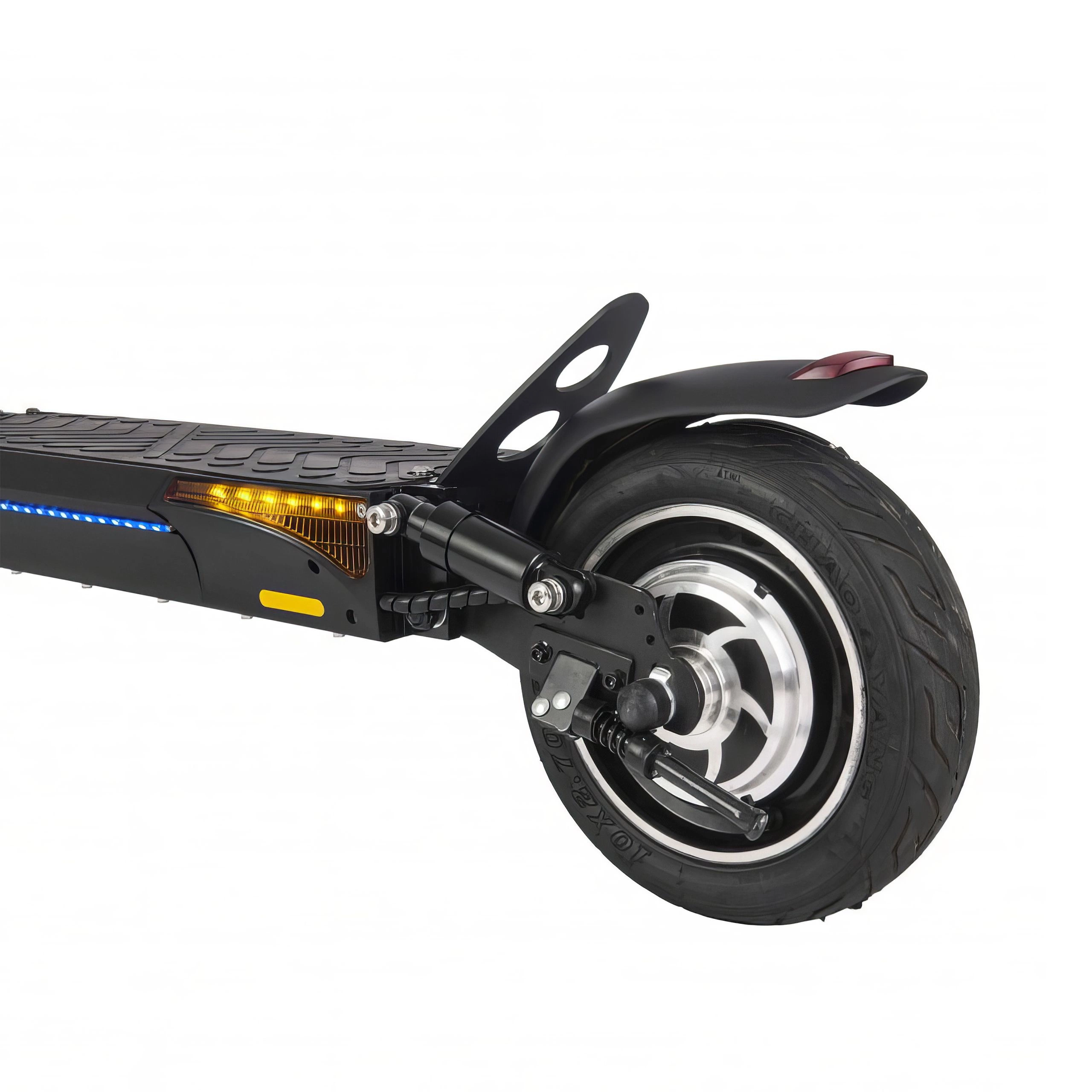 Il comfort di guida è un tratto distintivo del T4 Max Zwheel. Il suo avanzato sistema di sospensioni, abbinato a grandi pneumatici da 10 pollici, garantisce una guida fluida. Assorbe gli urti delle superfici irregolari, permettendovi di godervi il viaggio. Una buona ammortizzazione protegge i componenti vitali del veicolo. Prolunga la durata della batteria, del motore e del controller.