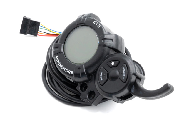 In queste situazioni, la scheda Minimotors Eye EY3 pannelloviene in soccorso. Il pezzo di ricambiosi interfaccia con il controller e la batteria, offrendo una chiara visualizzazione delle informazioni di guida. Migliora l'esperienza dell'utente, fornendo controlli intuitivi a portata di mano. Con pochi pulsanti è possibile accendere il veicolo, attivare la modalità di risparmio della batteria o le luci e cambiare la modalità di velocità.