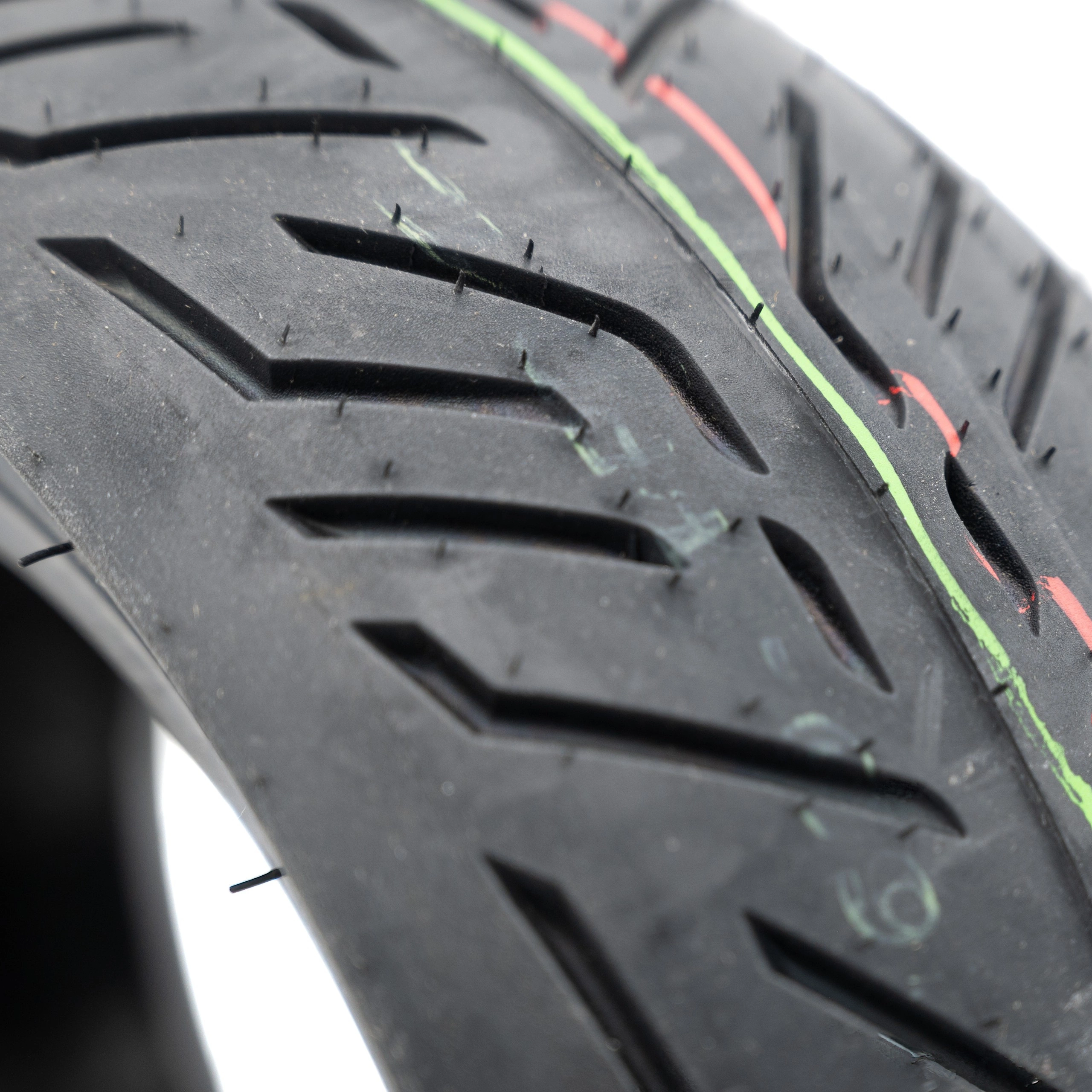 Il disegno del battistrada di questo pneumatico è ottimizzato per l'uso su strada. Presenta scanalature poco profonde che aiutano ad evacuare l'acqua e a mantenere l'aderenza sul bagnato.