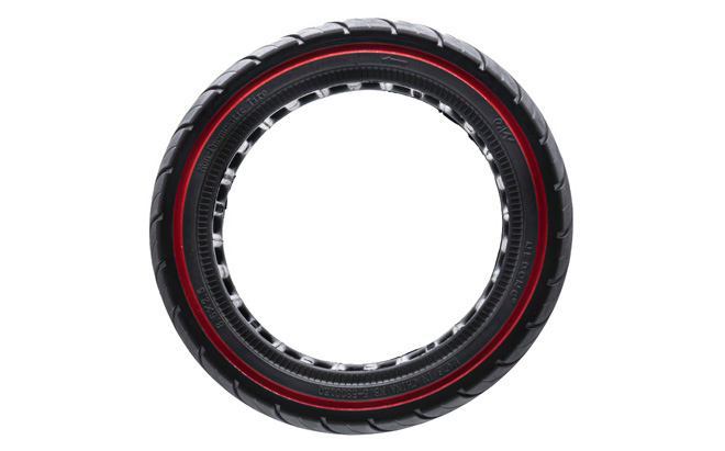 Questo non solo rende il pneumatico più adattabile e leggero, ma riduce anche al minimo le vibrazioni trasmesse a scooter elettrico. Il risultato?