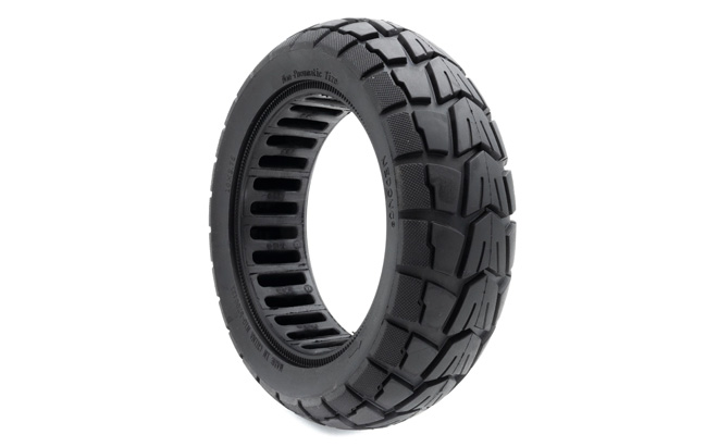 Elevate le vostre corse sul T4 Max scooter elettrico con i pneumatici pieni 10 x 2,75 aggiornati. Questi pneumatici sono progettati per resistere ai tipici pericoli della strada, come gli oggetti appuntiti, senza bucarsi, grazie alla loro solida struttura in gomma monopezzo. Questo significa meno preoccupazioni per i pneumatici sgonfi e nessuna necessità di cambiare frequentemente le camere d'aria.