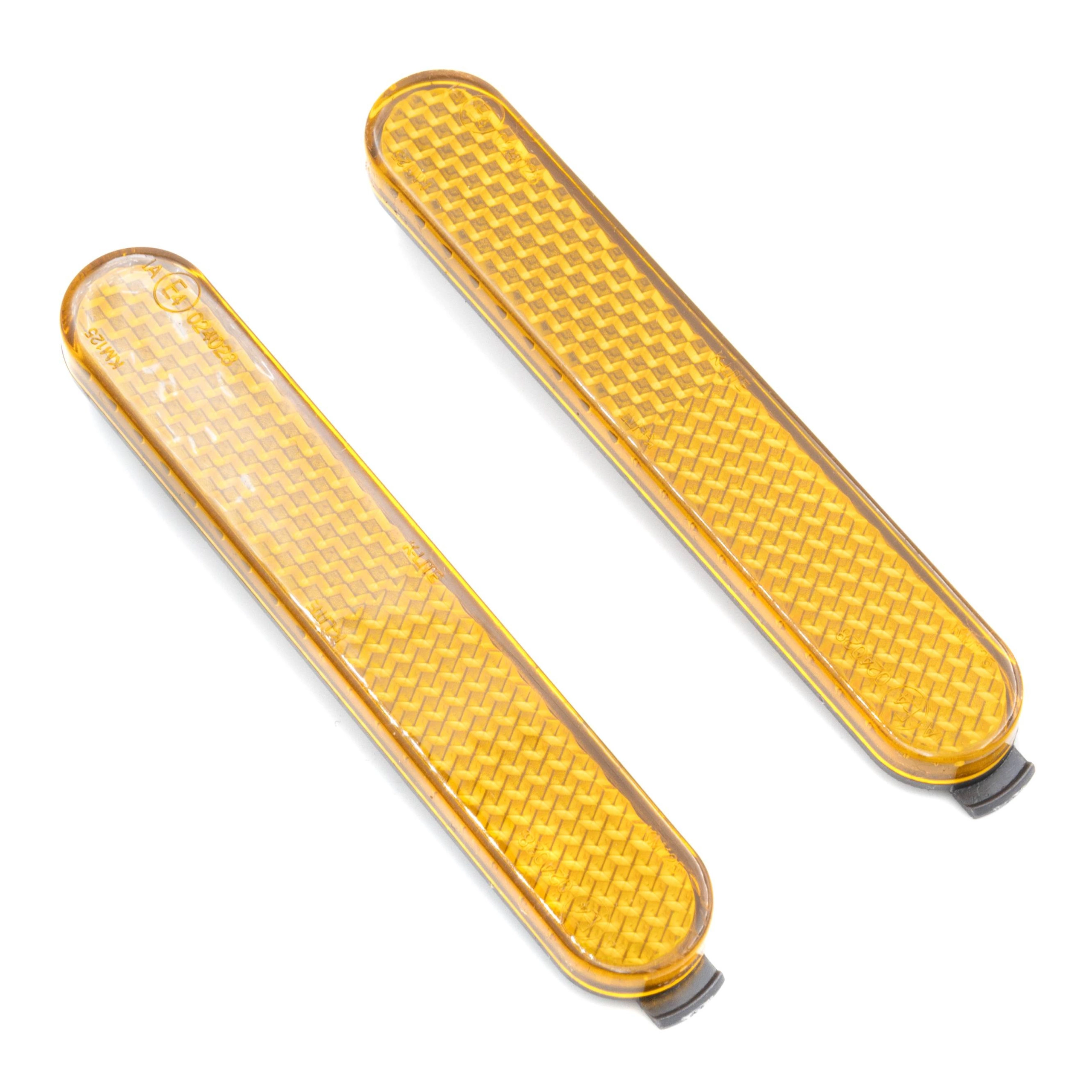 I catarifrangenti laterali posteriori sono caratterizzati da un colore vivace, facilmente visibile dagli altri utenti della strada. Il materiale altamente riflettente garantisce la visibilità anche a distanza.