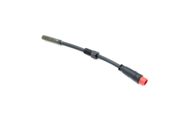 Questo dispositivo compatto si inserisce nel tubo del freno. Quando si azionano i freni, il sensore rileva la variazione di pressione idraulica e invia un segnale immediato per disinnestare il motore, attivare le luci dei freni e attivare altre funzioni di sicurezza.
